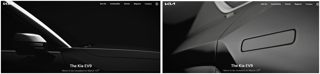 2일, 기아는 국내 최초 플래그십 전기 SUV 'The Kia EV9'(이하 EV9)의 티저 이미지와 영상을 공개했다. EV9은 기아가 ’ 21년 출시한 EV6에 이은 전기차 전용 플랫폼 E-GMP 기반 두 번째 전용 전동화 모델로, 전동화와 지속가능한 브랜드로의 변화를 이끌 플래그십 SUV다.